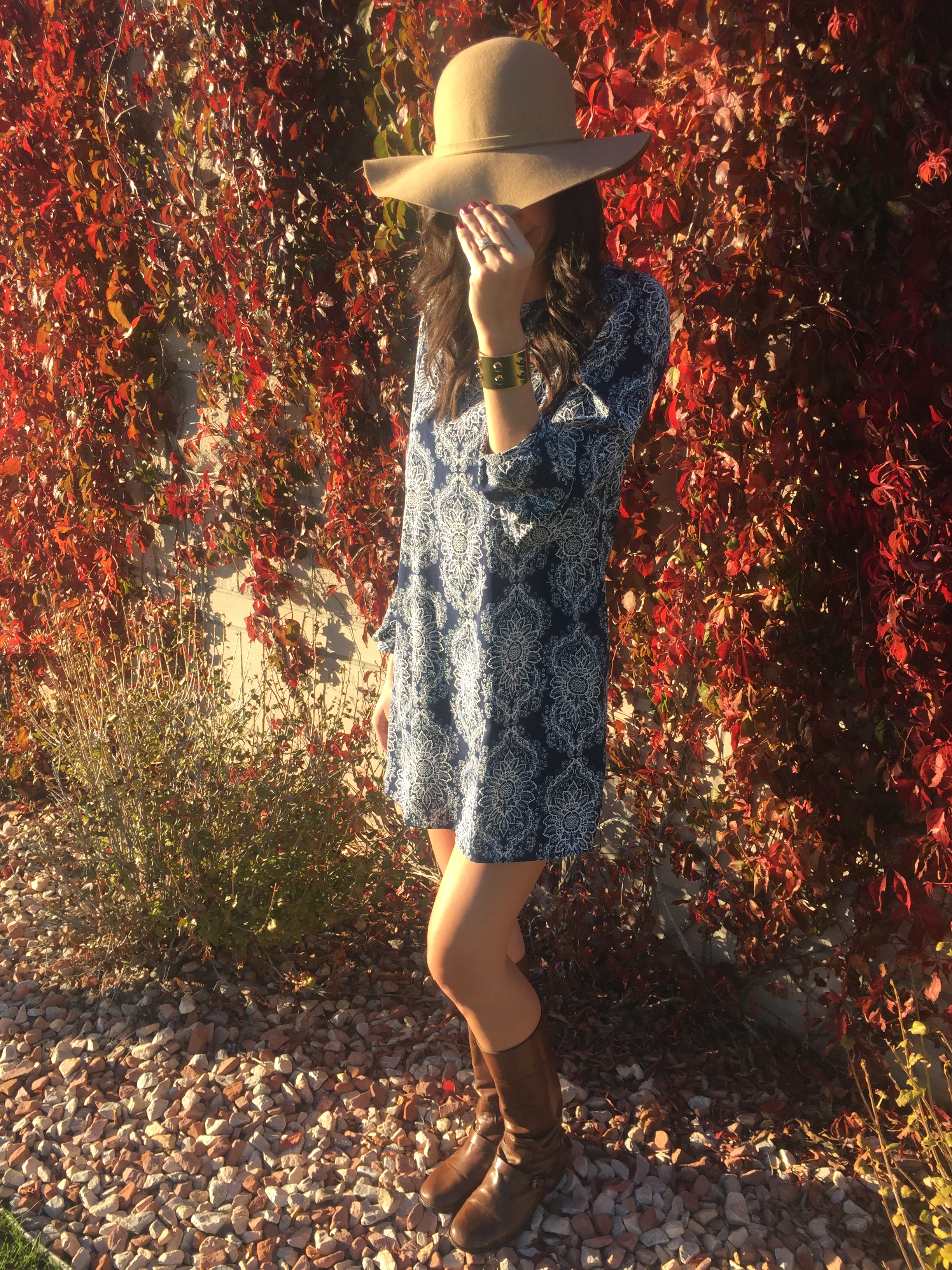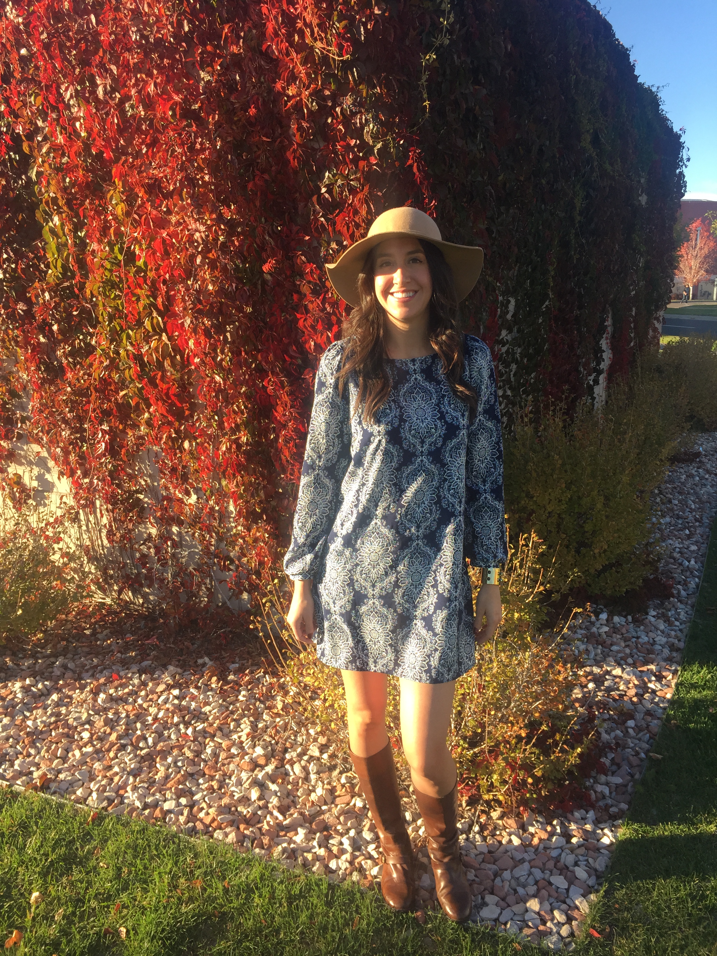 This past weekend was full of beautiful Colorado weather, the changing of leaves, and snuggling up on the couch with vino, movies and football.  When Scott and I did venture out, I thought it only fitting to don a great patterned dress and my favorite equestrian boots.